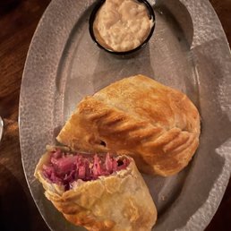 VIBES: 4/5 FOOD: 4/5 SERVICE: 3/5 VALUE: 3/5 If I could, I'd give this place a 3.5, but the overall aesthetic/vibe of the place, and the fact that I've had much better service at their other two locations for dinner, necessitates a roundup. I came for lunch on a Friday and our waiter helped me decide on the salmon pasty. It really seemed to take 5ever to actually get the pasty, but it was great once I got it! I don't think you can go wrong with any of their pastys, but I think they're rather overpriced and the value isn't quite there for them. I do love the vibe and overall aesthetic of the place, as well as the history and charm of the story of the pasty.